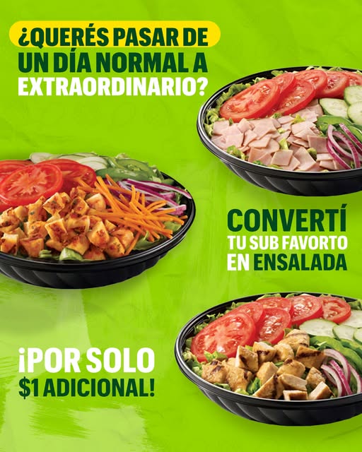 ¿Hoy querés algo más fresco? 🥗 Convertí tu Sub del día en ensalada desde solo $1 adicional y disfrutá. 📌Encontrá tu restaurante más cercano, horarios y teléfonos. 👉🏼 Ingresa aquí: https://restaurantes.subway.com/el-salvador
