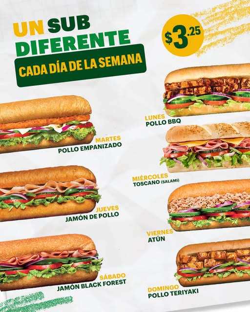 De lunes a domingo, siempre hay un sub esperándote.